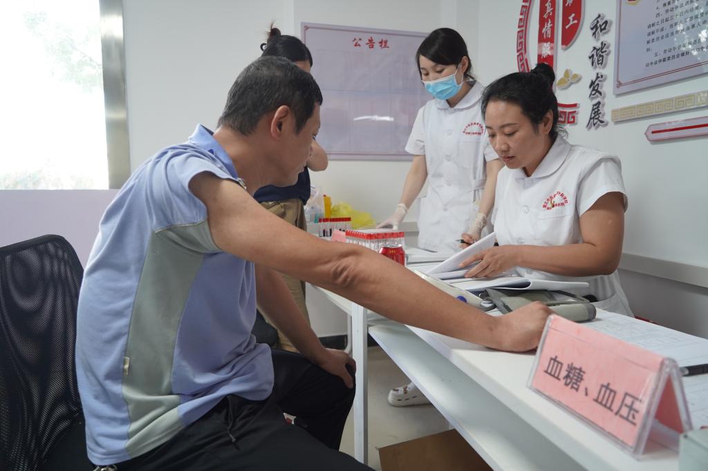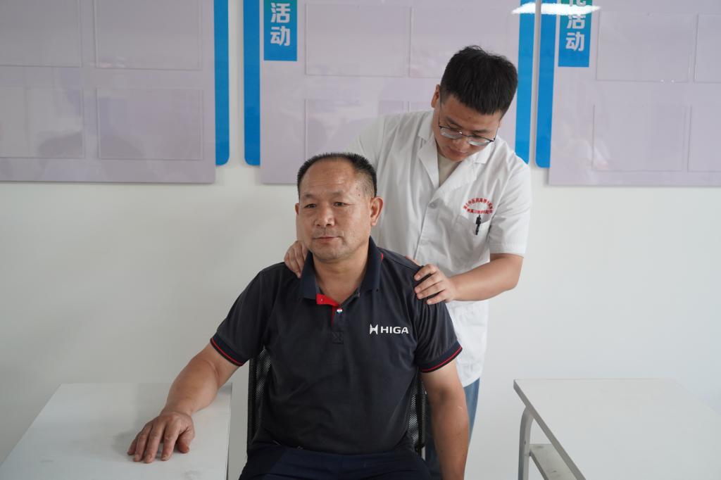 推拿区里此起彼伏地响起“哎呀,就是这儿!”的感叹声,中医康复师的手掌在工人肩颈处行云流水地推拿,为工友们缓解肩颈的僵硬和疼痛;血压血糖检测区,医生护士一边检查记录数据,一边叮嘱“血压有点高,要注意控制体重,改变饮食结构。”活动现场最受欢迎的“网红单品”当属学校自制的夏日消暑解渴的中药茶饮,里面有金银花、菊花、决明子等多味中药,此次共带来300份茶饮包,不到一小时就发放一空。