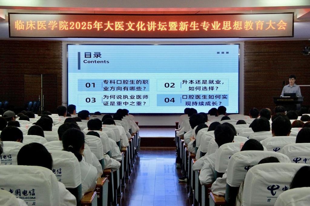 此次新生专业思想教育暨大医文化讲坛,将专业知识传授、职业规划指导与大医精神传承有机结合,既帮助新生快速建立医学专业认知,又为其未来职业选择提供了清晰指引。我校将持续深化“校地联动、校友协同”的育人模式,通过大医文化讲坛等平台,让更多优秀教师、基层校友走进校园,为医学新生成长赋能,助力培养更多扎根基层、服务人民健康的高素质医学人才。