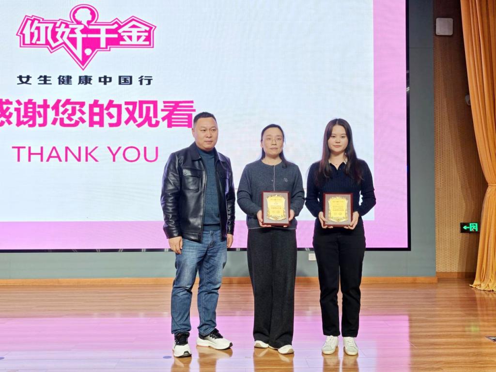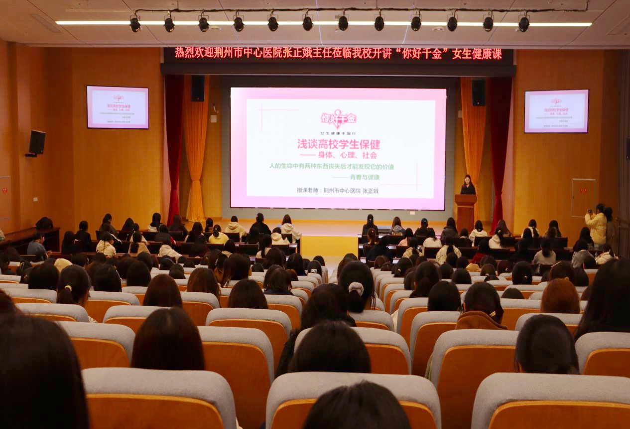 新闻网讯(通讯员 李佳)为普及女性健康知识,增强女性安全意识,提升自我保护能力,2025年10月27日晚19:00,由千金药业股份有限公司主办的“你好,千金——女生健康中国行”公益讲座在湖北中医药高等专科学校顺利举行。荆州市中心医院妇产科主任医师张正娥受邀担任主讲嘉宾,药学院党总支副书记罗艾明,专职辅导员欧阳晶晶、张童、李晓东、李佳,药学院学生分会全体成员以及药学院2025级全体女生共同参与。