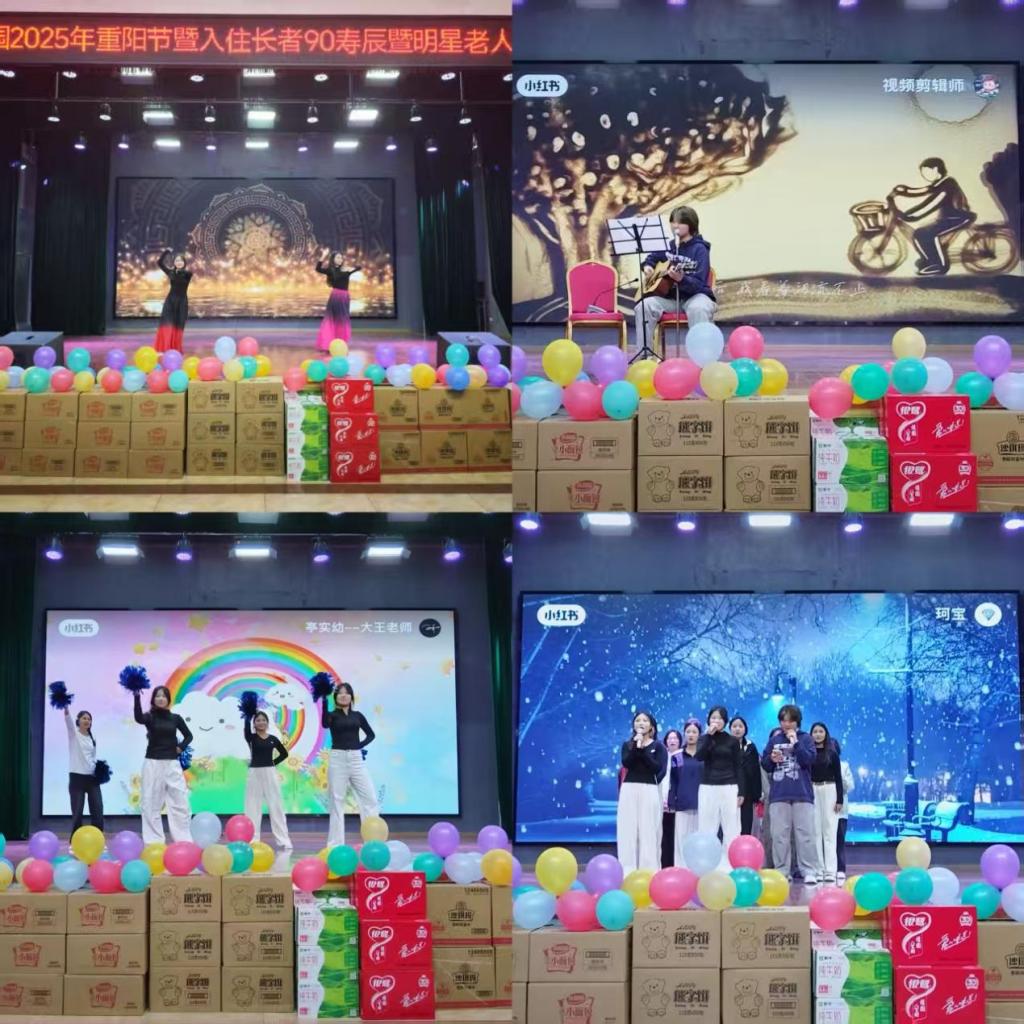 演出环节内容丰富、形式多样,新疆舞以其独特的民族风情点燃了现场气氛;吉他弹唱的《父亲写的散文诗》,用深情的旋律唤起众人美好回忆;舞蹈《快乐出发》以欢快活泼的节奏传递欢乐;最后的大合唱《至少还有你》将整场活动推向高潮,老人们随着节奏轻轻跟唱,现场洋溢着温馨的氛围。