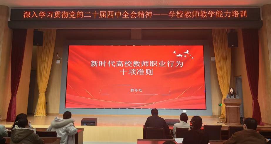 新闻网讯(通讯员 高子童)为深入学习贯彻党的二十届四中全会精神,全面提升教师队伍的师德修养与信息化教学能力,12月11日下午,教务处、图书馆(信息化建设办公室)联合组织开展了本学期教师教学能力专题培训,培训由教务处处长鲜于丽主持,学校专兼职教师及两所直属附属医院教师参加了此次培训。
