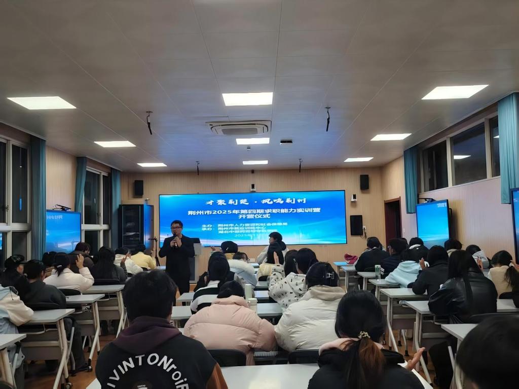 新闻网讯(通讯员 王盈盈 杨鑫)11月24日-27日、12月1日-4日晚自习期间,由荆州市人力资源和社会保障局主办、荆州市就业训练中心和学校承办的荆州市2025年第四期和第五期求职能力实训营在二号实验楼智慧教室成功举办,人社部门求职能力实训星级讲师团队授课,120名学生参与培训。