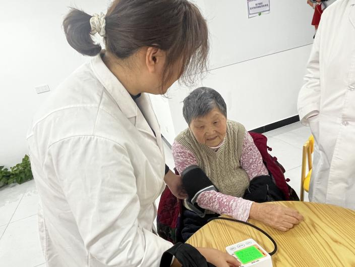 (为社区老党员量血压)