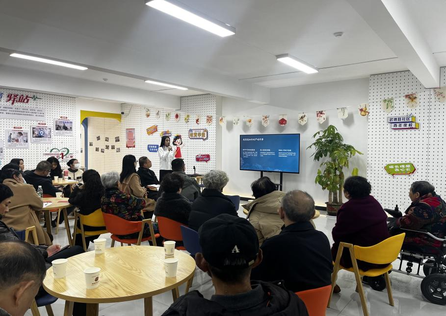 在理论宣讲环节,马克思主义学院副院长熊亮作为武德路社区的一员,紧密结合社区实际和居民关切,将党的二十届四中全会部署与健康中国战略深度融合,用“接地气、冒热气”的话语,紧扣老党员关心的健康保障、养老服务等民生话题,把党的二十届四中全会关于健全公共卫生服务体系、完善社会保障体系的部署,转化为通俗易懂的家常话,让老党员听得懂、能领会、用得上。学校青马班学员、中医2403班马菲雅同学结合党的二十届四中全会关于“加强慢性病综合防控”“推进中医药传承创新”的要求,依托所学专业知识,为大家科普“高血压的中医药防控”常识,普及中医“治未病”理念,建议大家日常调节情志、饮食上少盐少脂、适当运动锻炼、定期规范体检。